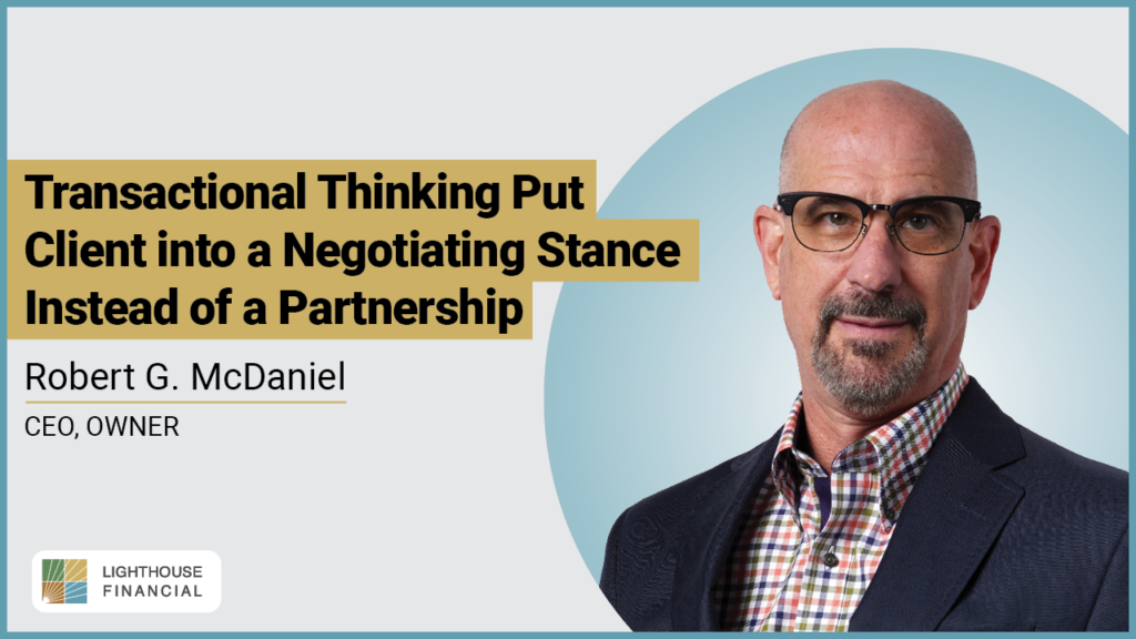 Transactional thinking put client into a negotiating stance instead of a partnership.